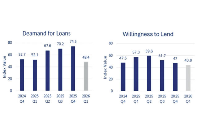 While corporate loan demand and banks’ willingness to lend to corporates remained soft last quarter, banks are signaling a shift in lending focus back towards the corporate segment this year. In the 1Q-2026 outlook willingness to lend to corporates rises to 58.4, while willingness to lend to Retail and SMEs moderates. The overall predictive outlook for 1Q-2026 points to softening, which suggests that credit growth is now driven more by sector-specific risks and operational constraints than by interest rates alone. (MFJ)